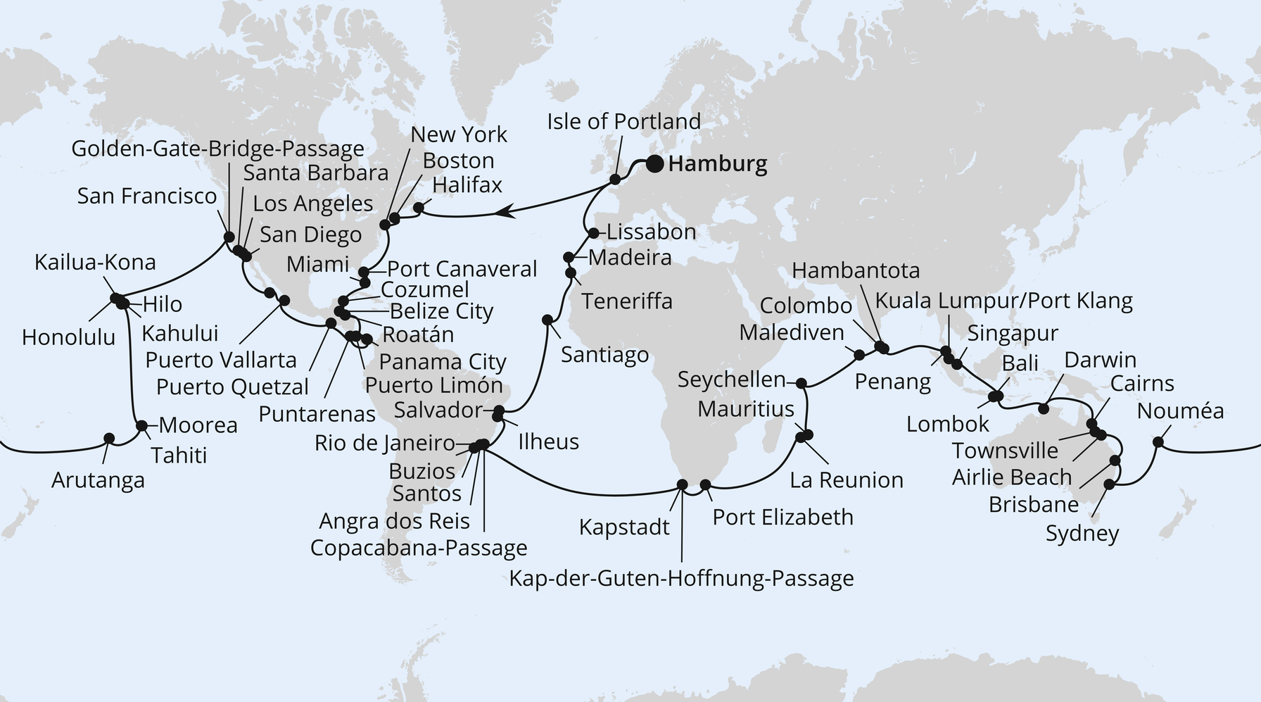 Newsletter Archiv Details NEWSLETTERIhre Crew von SEEREISEN SERVICE SCHACK präsentiert: Die größte AIDA Weltreise aller Zeiten – 2027/2028Jetzt buchbar! Einmal um die Welt. Und noch viel mehr. Mit der AIDA Weltreise 2027/2028 setzt AIDA neue Maßstäbe und lädt Sie zu einer Reise ein, die es so noch nie gab. 144 Tage. 6 Kontinente. 1 unvergessliches Abenteuer. An Bord der AIDAdiva erleben Sie die bislang längste AIDA-Weltreise – komfortabel, abwechslungsreich und voller einzigartiger Momente. Die wichtigsten Fakten auf einen Blick- 144 Tage ab/bis Hamburg – die längste AIDA-Weltreise bisher - So., 24.10.2027 – Do., 16.03.2028 - 6 Kontinente: Europa, Nordamerika, Südamerika, Ozeanien/Australien, Asien & Afrika - 27 Länder · 57 Häfen · 19 Inseln - 5 neue AIDA-Häfen, u. a. Panama City, Kailua Kona (Hawaii) und mehrere Ziele in Australien Einmalige Highlights entlang der Route- Durchfahrt des Panama-Kanals - Vierfache Äquatorüberquerung - Passage am Kap der Guten Hoffnung - Weihnachten auf See - Silvester in Sydney - Karneval in Rio de Janeiro - Naturwunder Great Barrier Reef - 11 Übernachtaufenthalte im Hafen, u. a. New York, San Francisco, Honolulu, Tahiti, Singapur, Sydney und Rio de Janeiro Ihr Abenteuer wartet - 144 Tage. 6 Kontinente. Unzählige Erlebnisse. Von Weihnachten auf See bis zum Karneval in Rio, vom Panama-Kanal bis zum Great Barrier Reef – diese Reise zeigt die Welt von ihrer schönsten Seite. Die AIDA Weltreise 2027/2028 ist für alle, die Abenteuer suchen, ohne auf Komfort und Ruhe verzichten zu wollen. Lassen Sie sich diese einmalige Gelegenheit nicht entgehen – wir beraten Sie gerne persönlich und begleiten Sie auf dem Weg zu Ihrer Traumreise. Ihre Crew von Seereisen Service Schack ⚓ Beratungstermin buchenWeltreise 2027/2028AIDAdiva24.10.2027 – 16.03.2028 / 144 Tageab/bis HamburgTermin vereinbarenUnser Team steht Ihnen bei Fragen gerne zur Verfügung! 0381 - 4582266schack@seereisenservice.de Mo. - Fr. 10 - 18 Uhr Sa. 10 - 13 Uhr Beratungstermin buchenDeckblatt(© i-picturestock.adobe.com) Änderungen & Irrtümer vorbehaltenEs gelten die Allgemeinen Reisebedingungen, Hinweise und Informationen auf aida.de/agb. AIDA Cruises • German Branch of Costa Crociere S.p.A. • Am Strande 3 d • 18055 RostockSEEREISEN SERVICE SCHACK GMBH ist ReisevermittlerSeereisen Service Schack | Am Vögenteich 25 | 18055 RostockFax: 0381 - 4582268 | Tel: 0381 4582266schack@seereisenservice.deNewsletter abbestellenwww.seereisenservice.de