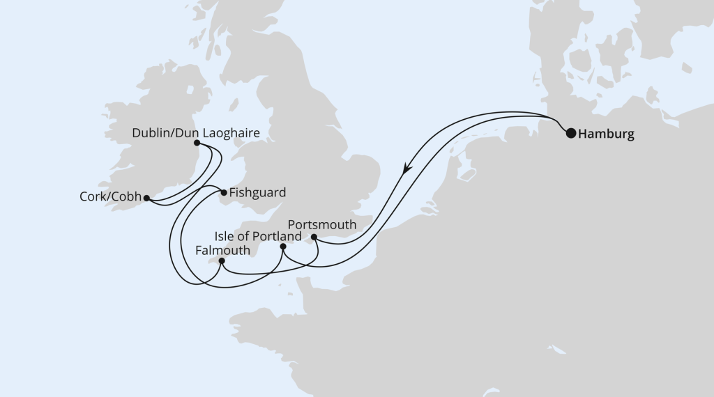 Hamburg – Seetag – Portsmouth – Falmouth – Cobh – Holyhead – Fishguard – Isle of Portland – Seetag – Hamburg